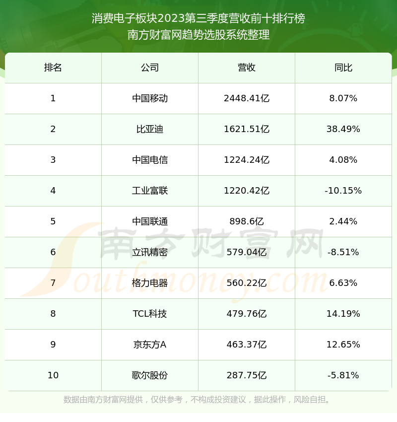按照南方财富网趋势选股系统统计,该股所属板块为消费电子板块,该板块共有349只股票,春秋电子2023第三季度营收在该板块中排名为第112名,该板块2023第三季度营收排名前十的股票如下表:
