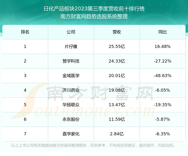 按照南方财富网趋势选股系统统计,该股所属板块为日化产品板块,该板块共有7只股票,两面针2023第三季度营收在该板块中排名为第7名,该板块2023第三季度营收排名前十的股票如下表: