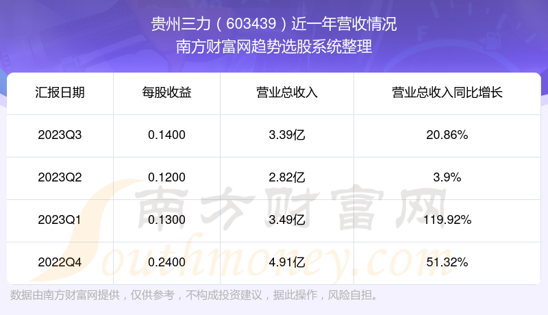 财报显示,2023年第三季度贵州三力营收3.39亿元,同比增长20.86%,净利润5702万元,同比增长43.82%。