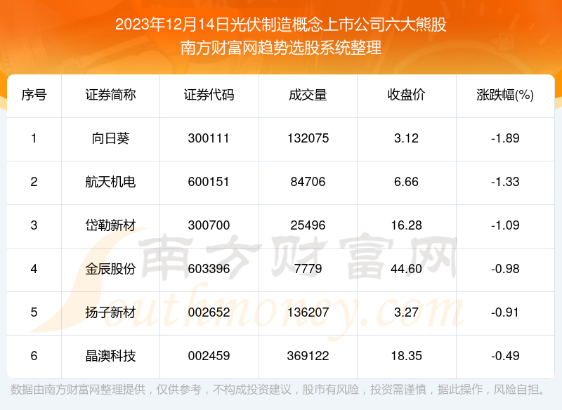 以上内容就是对【正规的股票配资 2023年12月14日盘后数据:光伏制造概念上市公司六大熊股】的解答,如果解决了您的问题欢迎把链接分享给朋友(https://www.youge168.com/mod_article-article_content-article_id-52208.html)