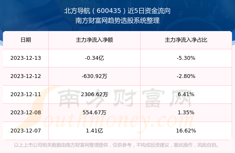 二、北方导航(600435)近期盘面、资金面情况