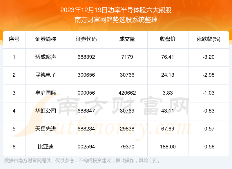 以上内容就是对【期货配资网 2023年12月19日盘后数据:功率半导体股六大熊股】的解答,如果解决了您的问题欢迎把链接分享给朋友(https://www.youge168.com/mod_article-article_content-article_id-52270.html)