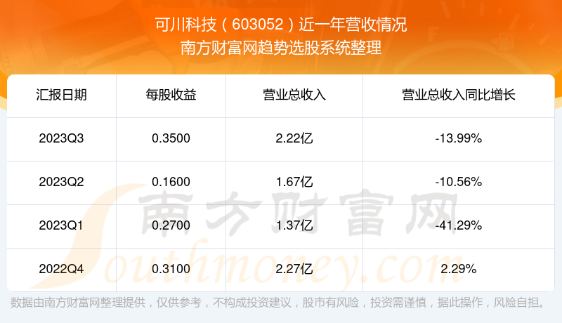 2023年第三季度,可川科技营收同比-13.99%,净利润同比-34.89%。