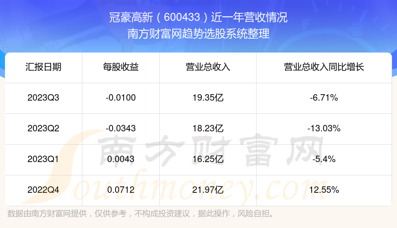 冠豪高新股票近一年营收情况如下表: