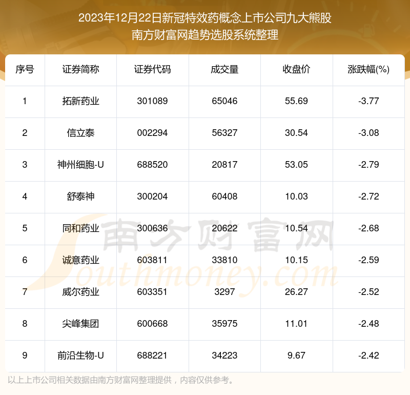以上内容就是对【配资门户网 数据解盘|2023年12月22日新冠特效药概念上市公司九大熊股名单】的解答,如果解决了您的问题欢迎把链接分享给朋友(https://www.youge168.com/mod_article-article_content-article_id-52581.html)