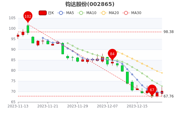 12月22日消息,钧达股份5日内股价上涨1.28%,该股最新报70.220元涨0.7%,成交10.27亿元,换手率6.61%。
