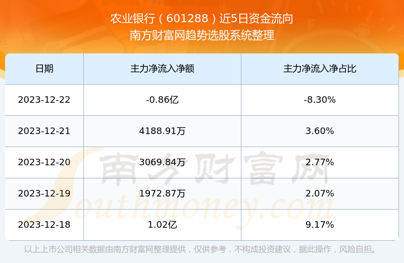 二、农业银行(601288)近期盘面、资金面情况