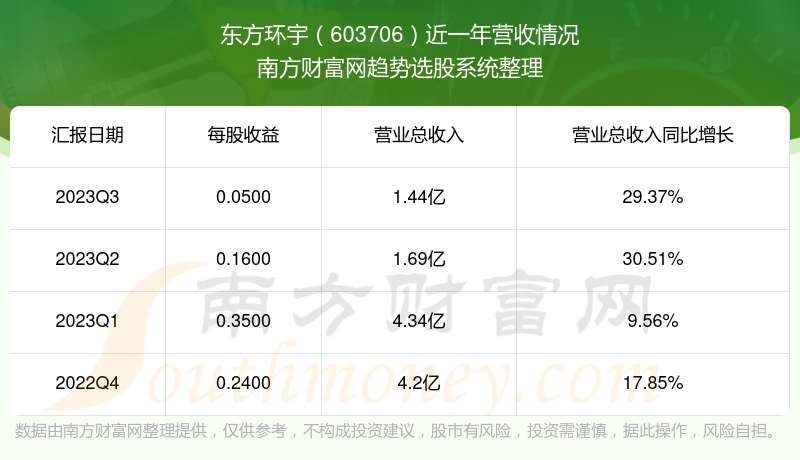 东方环宇股票近一年营收情况如下表: