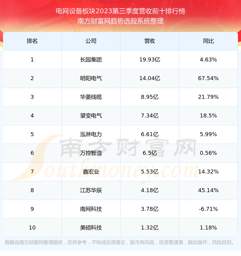 按照南方财富网趋势选股系统统计,该股所属板块为电网设备板块,该板块共有14只股票,ST天成2023第三季度营收在该板块中排名为第14名,该板块2023第三季度营收排名前十的股票如下表: