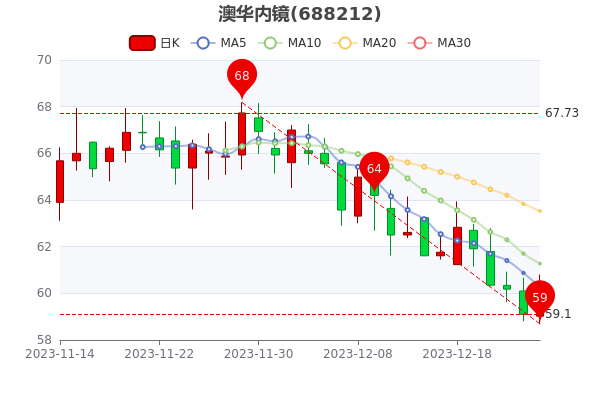 12月25日收盘消息,澳华内镜5日内股价下跌3.39%,今年来涨幅上涨7.95%,最新报59.880元,涨1.32%,市盈率为374.25。