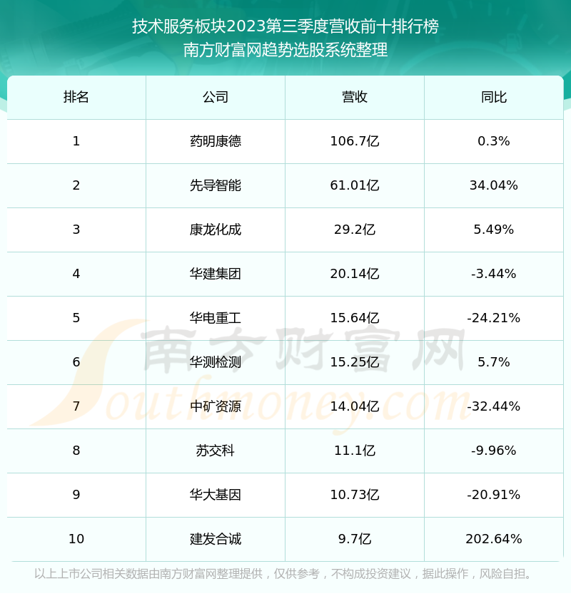 按照南方财富网趋势选股系统统计,该股所属板块为技术服务板块,该板块共有55只股票,三未信安2023第三季度营收在该板块中排名为第55名,该板块2023第三季度营收排名前十的股票如下表: