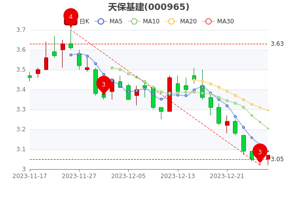 12月28日盘中消息,天保基建5日内股价下跌5.88%,今年来涨幅下跌-46.73%,最新报3.040元,成交额121.01万元。
