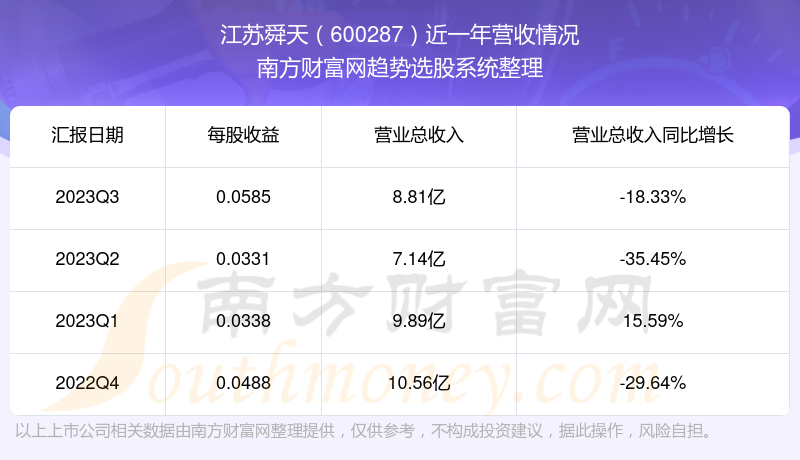2023年第三季度,江苏舜天营收同比-18.33%,净利润同比219.99%。