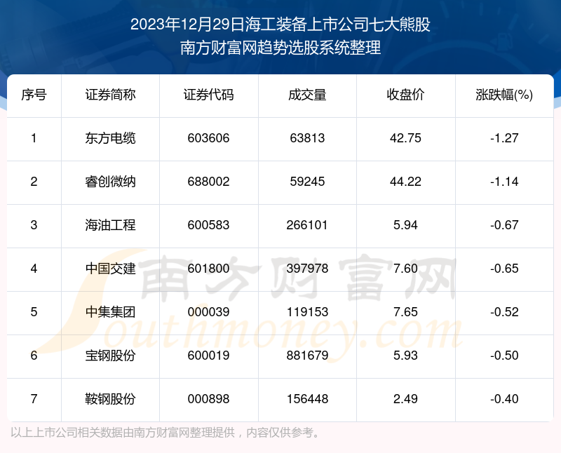 以上内容就是对【期货配资网 数据解盘|2023年12月29日海工装备上市公司七大熊股名单】的解答,如果解决了您的问题欢迎把链接分享给朋友(https://www.youge168.com/mod_article-article_content-article_id-53159.html)