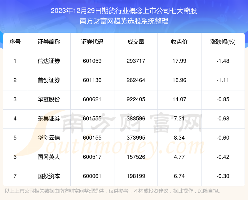 以上内容就是对【在线配资公司 板块复盘|2023年12月29日期货行业概念上市公司七大熊股一览】的解答,如果解决了您的问题欢迎把链接分享给朋友(https://www.youge168.com/mod_article-article_content-article_id-53162.html)