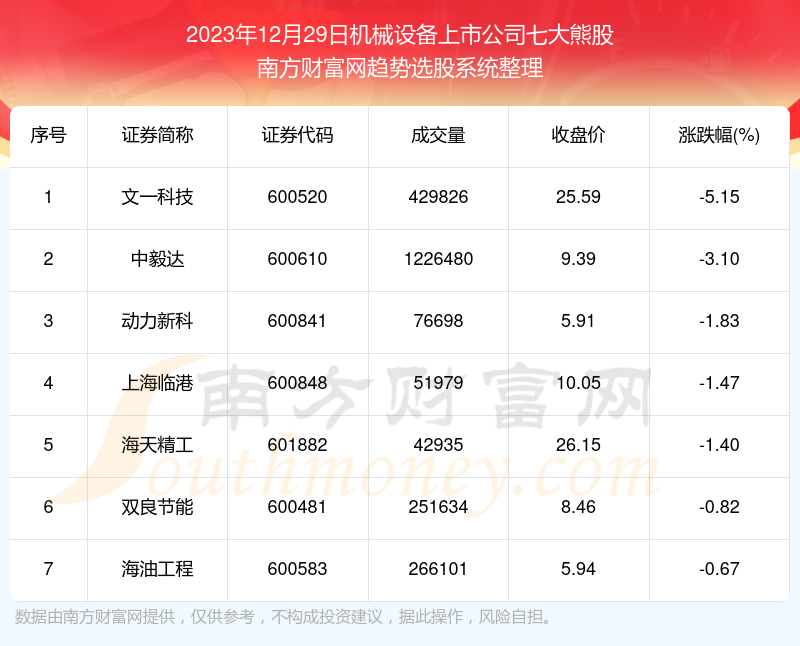 以上内容就是对【上海配资平台 【盘后整理】机械设备上市公司2023年12月29日七大熊股一览】的解答,如果解决了您的问题欢迎把链接分享给朋友(https://www.youge168.com/mod_article-article_content-article_id-53333.html)