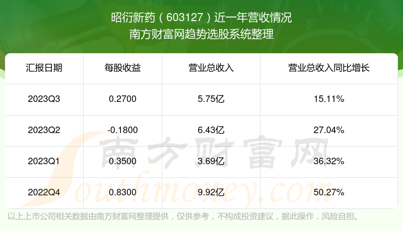 昭衍新药2023年第三季度公司实现营业收入5.75亿元,同比15.11%;归母净利润2.37亿元,同比-9.18%。