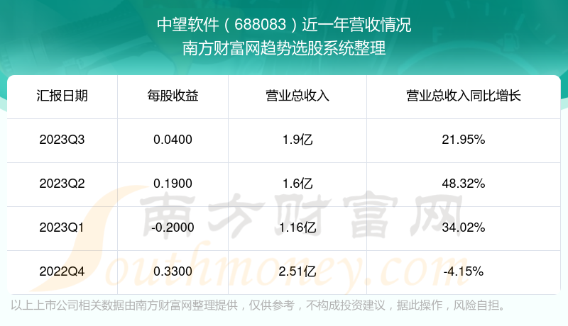 按照南方财富网趋势选股系统统计,该股所属板块为软件开发板块,该板块共有195只股票,中望软件2023第三季度营收在该板块中排名为第106名,该板块2023第三季度营收排名前十的股票如下表: