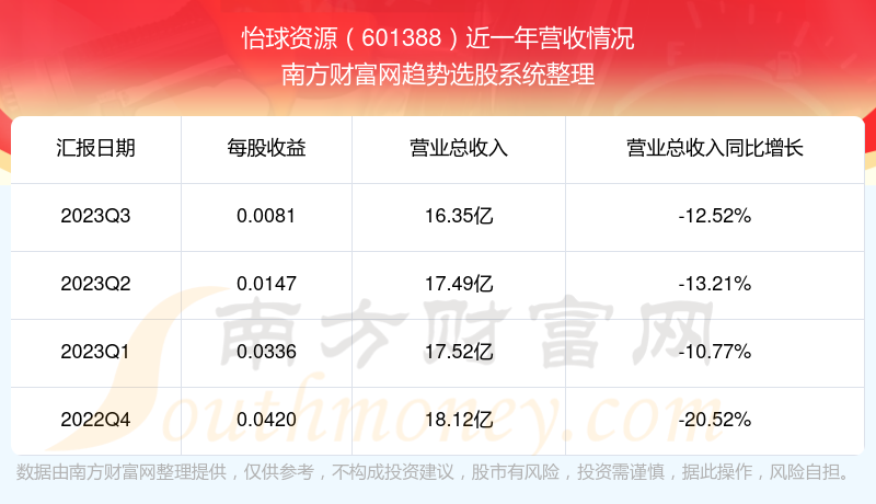 怡球资源发布2023年第三季度财报。实现总营收16.35亿元,同比增长-12.52%;扣非净利润同比增长-40.22%至2004.61万元。