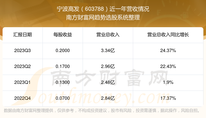 按照南方财富网趋势选股系统统计,该股所属板块为特斯拉板块,该板块共有285只股票,宁波高发2023第三季度营收在该板块中排名为第241名,该板块2023第三季度营收排名前十的股票如下表:
