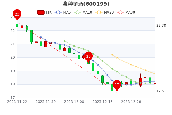 1月3日消息,金种子酒5日内股价下跌2.1%,该股最新报18.100元跌0.11%,成交1.09亿元,换手率0.92%。