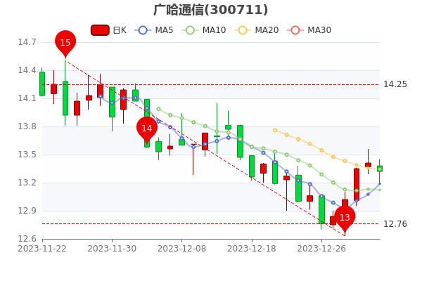 1月3日消息,广哈通信开盘报价13.38元,收盘于13.320元,跌0.67%。当日最高价13.45元,市盈率56.66。
