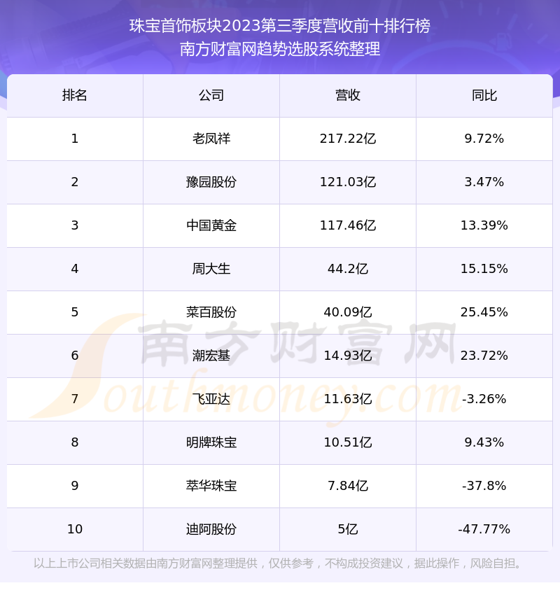 按照南方财富网趋势选股系统统计,该股所属板块为珠宝首饰板块,该板块共有15只股票,豫园股份2023第三季度营收在该板块中排名为第2名,该板块2023第三季度营收排名前十的股票如下表: