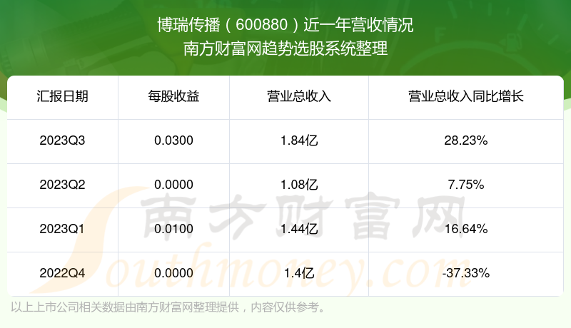 博瑞传播(600880)披露2023年第三季度报告,报告期实现营收1.84亿元,同比28.23%;归母净利润2642.79万元,同比31.79%;扣非净利润2523.45万元,同比55.08%。