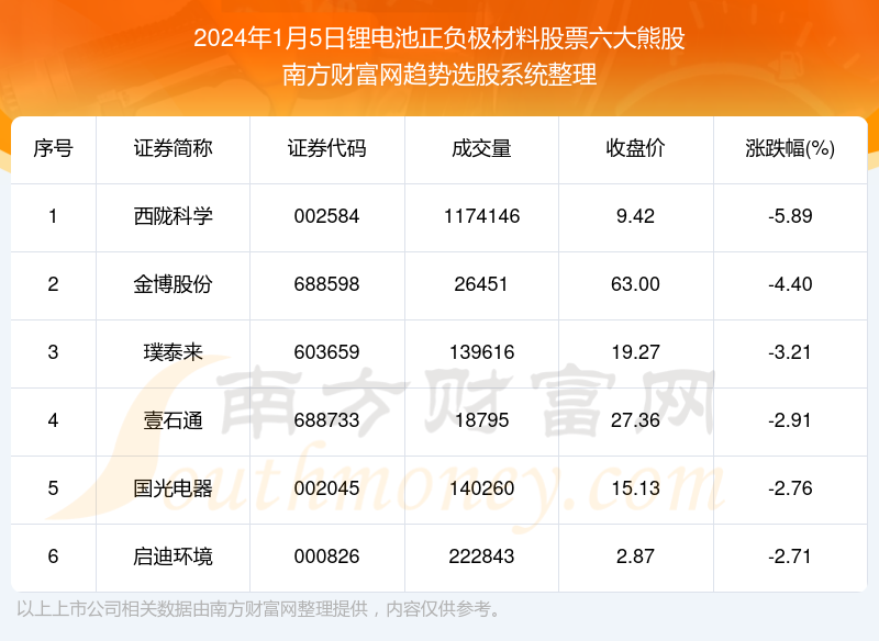以上内容就是对【配资是什么意思 板块复盘|2024年1月5日锂电池正负极材料股票六大熊股名单】的解答,如果解决了您的问题欢迎把链接分享给朋友(https://www.youge168.com/mod_article-article_content-article_id-53666.html)