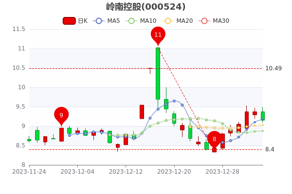1月5日消息,岭南控股开盘报价9.37元,收盘于9.150元,跌2.35%。今年来涨幅上涨2.62%,市盈率-33.89。