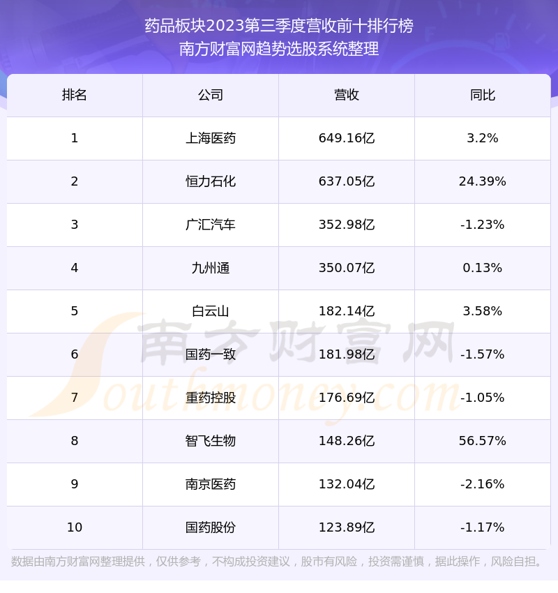 按照南方财富网趋势选股系统统计,该股所属板块为药品板块,该板块共有361只股票,江苏吴中2023第三季度营收在该板块中排名为第218名,该板块2023第三季度营收排名前十的股票如下表: