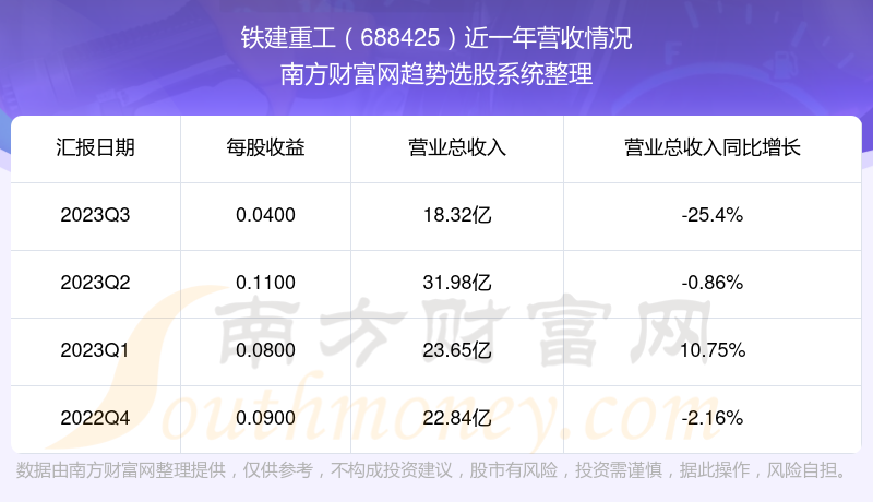 铁建重工2023年第三季度公司实现营业收入18.32亿元,同比-25.4%;归母净利润1.9亿元,同比-51.09%。