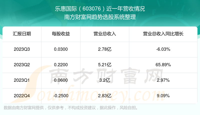 财报显示,2023年第三季度乐惠国际营收2.78亿元,同比增长-6.03%,净利润291.22万元,同比增长-74.38%。