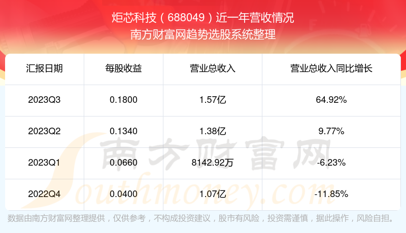 炬芯科技股票近一年营收情况如下表: