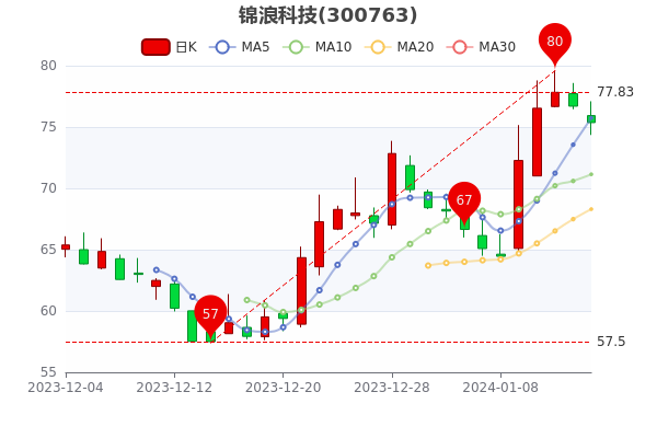 1月15日收盘消息,锦浪科技3日内股价下跌3.28%,最新报75.360元,成交额6.45亿元。