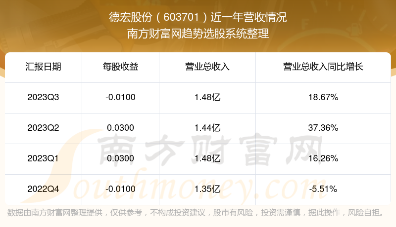 德宏股份股票近一年营收情况如下表: