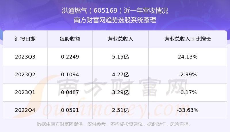 洪通燃气股票近一年营收情况如下表: