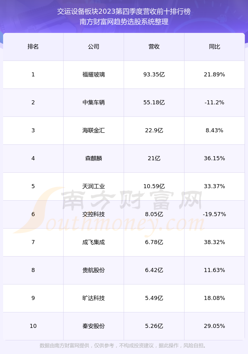 按照南方财富网趋势选股系统统计,该股所属板块为交运设备板块,该板块共有14只股票,内蒙一机2023第四季度营收在该板块中排名为第14名,该板块2023第四季度营收排名前十的股票如下表:
