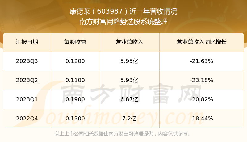 康德莱2023年第三季度财报显示,公司主营收入5.95亿元,同比-21.63%;归母净利润5308.52万元,同比-34.56%;扣非净利润4941.24万元,同比-16.59%。
