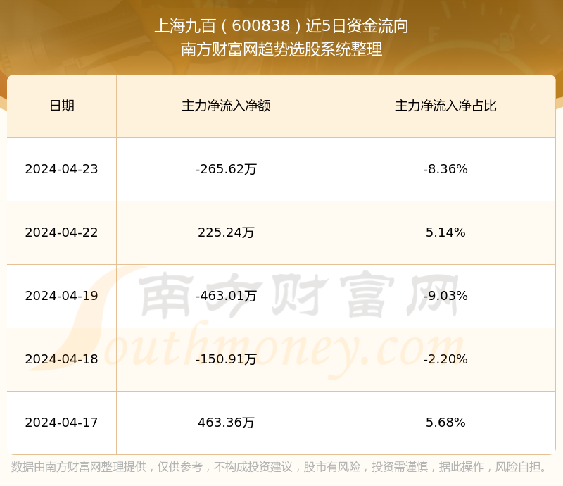 二、上海九百(600838)近期盘面、资金面情况