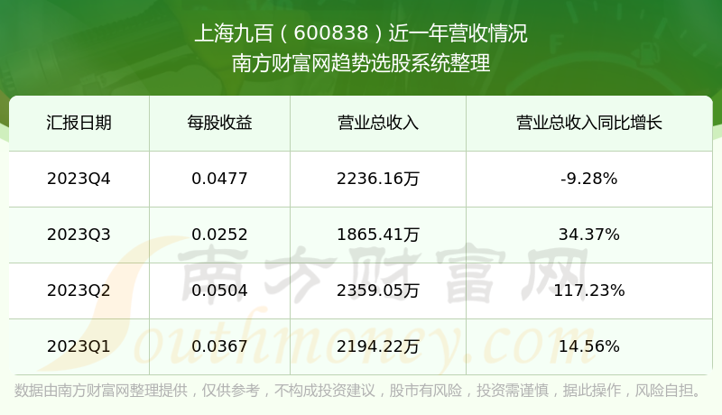 上海九百股票近一年营收情况如下表: