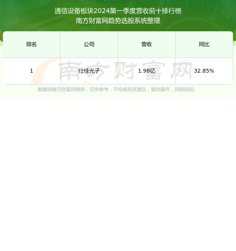 按照南方财富网趋势选股系统统计,该股所属板块为通信设备板块,该板块共有1只股票,博信股份2024第一季度营收在该板块中排名为第1名,该板块2024第一季度营收排名前十的股票如下表: