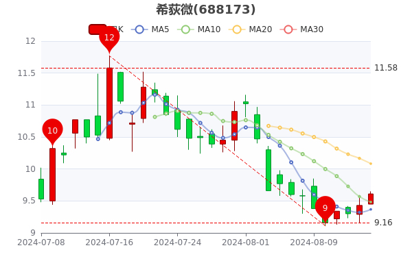 截至8月16日,希荻微总市值39.05亿元,10时15分该股涨1.91%,股价报9.530元,5日内股价上涨0.53%,成交90.63万手,换手率0.38%。