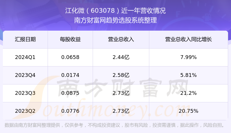 江化微股票近一年营收情况如下表: