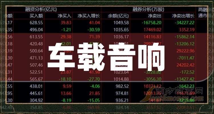 据南方财富网概念查询工具数据显示,车载音响题材公司有: