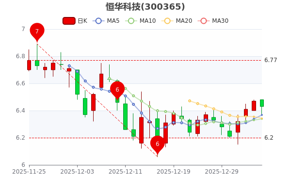 1月7日上午收盘消息,恒华科技开盘报价6.48元,收盘于6.430元。5日内股价上涨2.94%,总市值为38.57亿元。