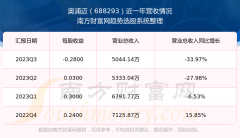 一、奥浦迈(688293)股票营收情况 奥浦迈(688293)发布2023年第三季度财报。2023年第三季度奥浦迈实现营业收入5044.14万元,同比增加-33.97元%,环比增加-5.42%;净利润为529.7万元,同比...
