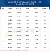 截止2023年12月11日,个股表现方面,光伏TOPcon电池片板块股票当日领跌股为聚和材料(688503),该股当日报收52.06,上涨-7.50%,成交量5.15万。东方盛虹(000301)以下跌-2.32%紧随其后,该股当日成交...