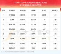 截止2023年12月11日,个股表现方面,民族品牌板块股票当日领跌股为养元饮品(603156),该股当日报收20.53,上涨-4.15%,成交量13.76万。ST易购(002024)以下跌-2.20%紧随其后,该股当日成交量24.32万...