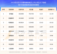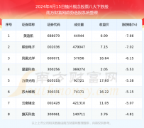 截止2024年4月15日,个股表现方面,家庭医生股票当日领跌股为华平股份(300074),该股当日报收3.61,上涨-11.30%,成交量36.99万。海峡创新(300300)以下跌-10.00%紧随其后,该股当日成交量29.06万。...